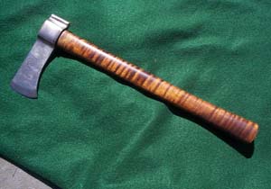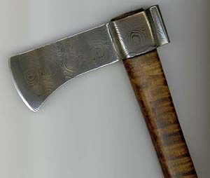 | Warhawk Handle (haft): Curly Maple, Oil Finished Blade: Nickel Damascus Blade 8 3/4" Haft O/A 14 1/2" SOLD $500.00 US Shipping & Handling: $12.00 (Shipped UPS Ground) International Shipping & Handling: $30.00 (Shipped Global Priority Mail) . |