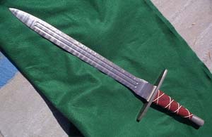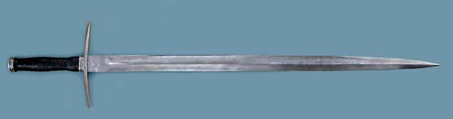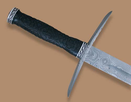 Celtic Sword O/A Length: 40" Blade Length: 33" Guard: 8" across Handle: Carved Ebony Chased Sterling Silver Celtic Designs Comes with a heavy wood sheath AVAILABLE AT: MASTERSMITH www.BeautifulBlades.com